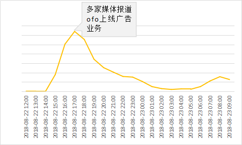 昨日下午,财经网、中国新闻网 等多家主流媒体报道“ofo宣布上线广告,开锁前先看视频广告”,引发网友疯狂吐槽。“ofo开锁前先看5秒视频广告”在昨日傍晚时分还登上了热搜,舆情高峰也在此时间段(17:00-18:00)出现。