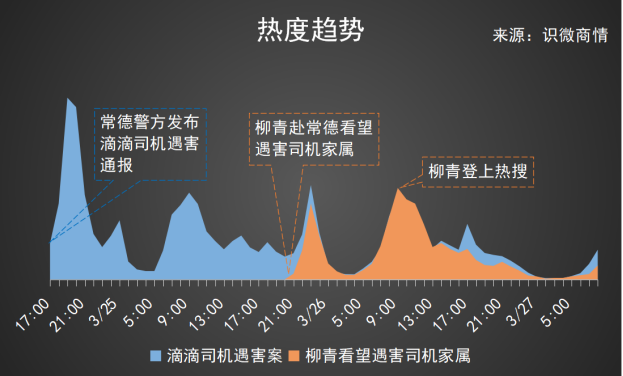 滴滴声明、柳青探望遇害司机家属有不少篇幅报道,这一次滴滴的声明虽然未脱离“配合调查”、“核查事实”、“赔偿”、“工作人员前往慰问”这老几样,有程维的预告和柳青现身常德,也就不难理解为什么在25日晚开始,柳青关注度激增。