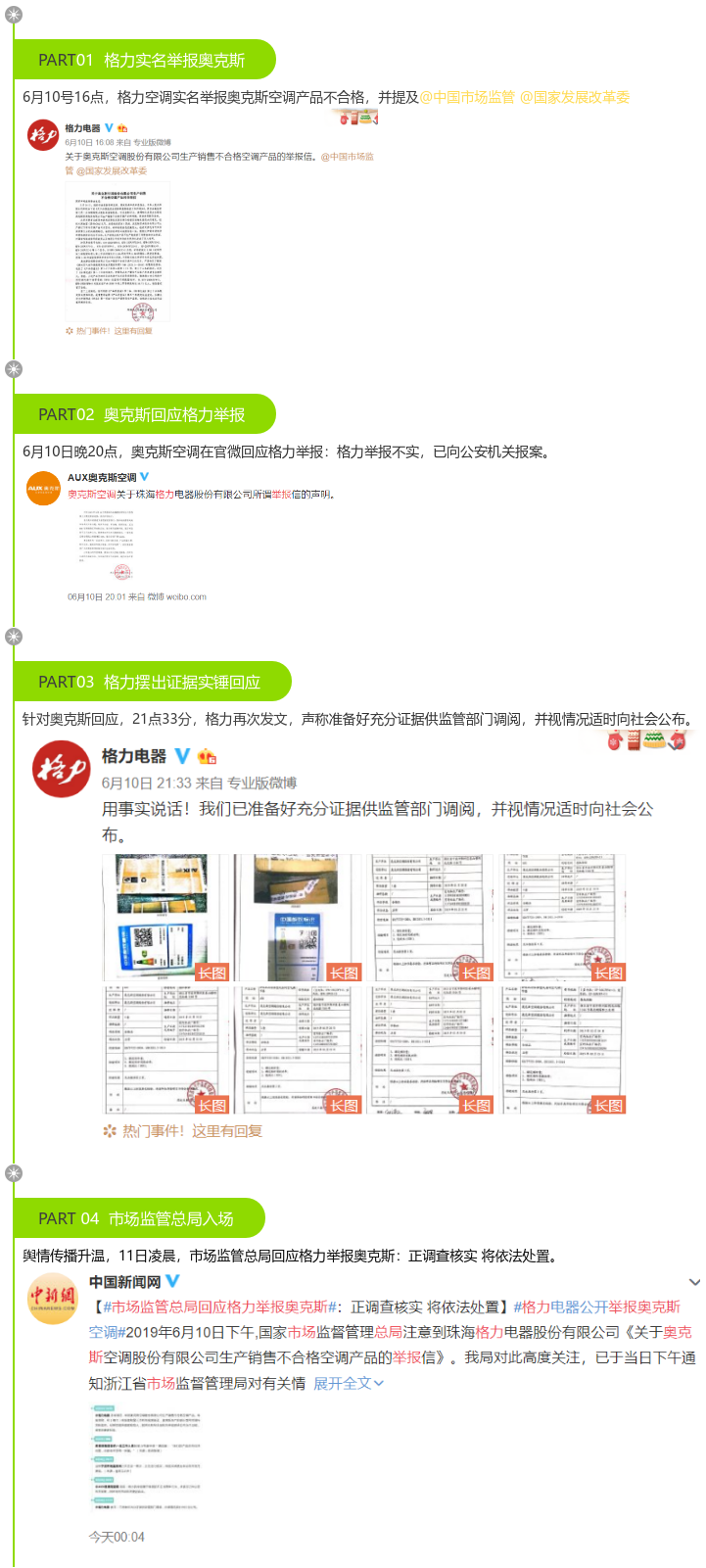 6月10下午16点8分,格力空调实名举报奥克斯空调产品不合格。一石引起千波浪,网友、媒体纷纷关注
