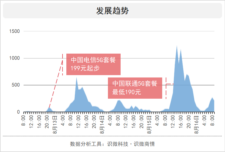 8月14日,在中国联通2019年度中期业绩发布会上,中国联通董事长兼首席执行官王晓初称,目前联通推出的5G功能包费用最低为190元,在长远的计划里将谋求根据用户的质量、速度的不同差异化定价。8月15日,“联通5G套餐最低190元”登上热搜。值得一提的是,三大运营商唯有中国移动还未给出5G套餐参考价(本文截稿前)。不过,按往年三大的资费价格推算,移动的5G套餐价应该会与电信、联通保持在同一水平。