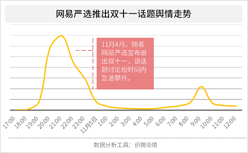 距离“双十一”只剩下一周时间,“双十一”这场消费狂欢的预热正在进行,一位玩家却大声宣告退出了。这很快的引起了网友与媒体的注意,网易严选发文后,相关讨论在短时间内急速攀升,很快达到了讨论高点。而这种讨论在第二日还在延续。