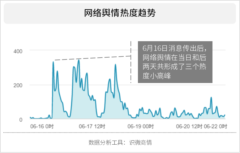 消息经媒体报道后,舆情热度在当晚随即达成峰值,因为话题的可议论性较强,在其后两天同形成了两个舆情小高峰。