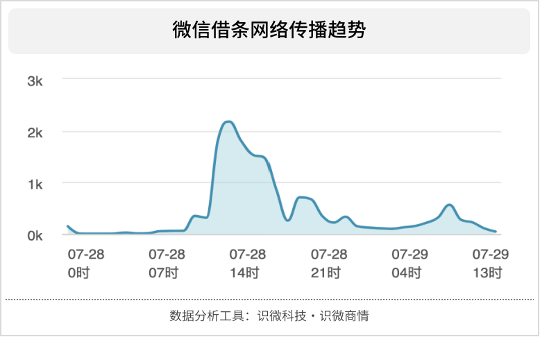 不过,当前正值东京奥运会举办,民众大部分注意力都在赛事和运动员身上。“微信上线借条”一事在7月28日被每日经济新闻、ZEALER等媒体报道后短暂的获得了较高热度后就逐渐沉寂了。