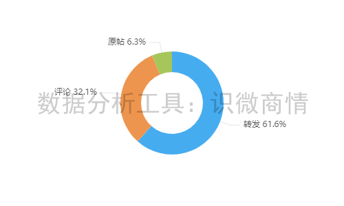 该段时间内,有关“伊利就大屏物料提前露出致歉”的舆情信息以转发为主,占61.6%;其次为评论,占32.1%;原帖较少,占6.3%。