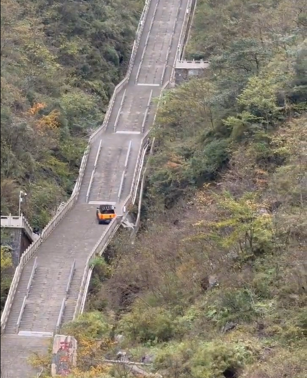 2025年11月12日12 时,风云X3L在张家界天门山景区正式进行“极限挑战测试”,攀爬999级天梯 (垂直落差150米,平均坡度45°,局部超60°)