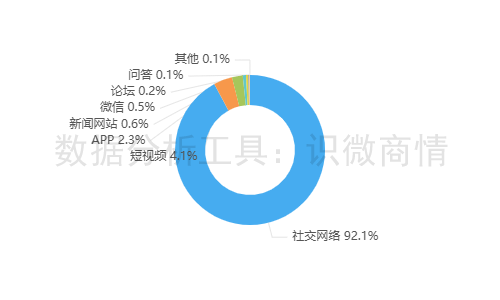 该时段内,有关“vivo直播间置顶性别评论争议事件”的舆情主要集中在社交网络平台,约占92.1%,其次为短视频(约占4.1%),新闻APP(约占2.3%)。