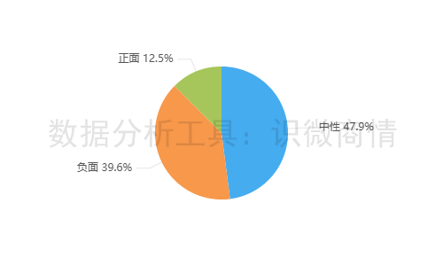 该时段内,有关“vivo直播间置顶性别评论争议事件”的舆情情感倾向以中性为主,占47.9%;其次为负面舆情,占39.6%。正面舆情较少,占12.5%。
