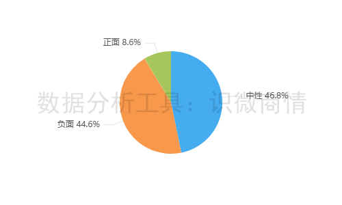 该时段内,有关“快手遭到黑灰产攻击事件”的舆情情感倾向以中性为主,占46.8%;其次为负面舆情,占44.6%。正面舆情较少,占8.6%。
