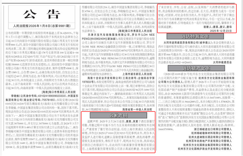 2026年1月8日,《人民法院报》3版刊登“小便门”当事人唐某及其父母的道歉声明。