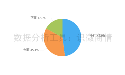 该时段内,有关“海底捞锅里被扔尿布事件”的舆情情感倾向以中性为主,占47.9%;其次为负面舆情,占35.1%。正面舆情较少,占17.0%。