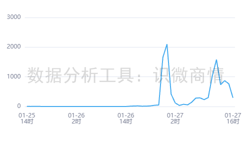 根据识微商情舆情分析系统(<<<点击免费试用)显示,2026年01月25日14时至2026年01月27日16时,有关“好利来面包掉地仍售卖事件”的舆情热度约为11,196。通过观察趋势可知,舆情于01月27日00时达到最高峰。