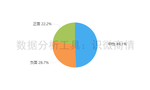 该时段内,有关“好利来面包掉地仍售卖事件”的舆情情感倾向以中性为主,占49.1%;其次为负面舆情,占28.7%。正面舆情较少,占22.2%。
