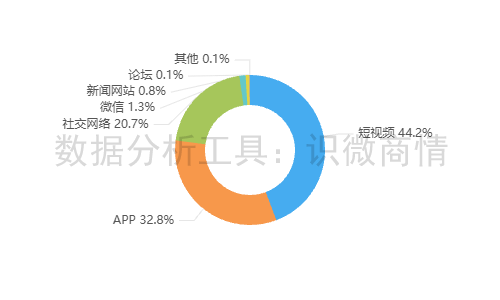 该时段内,有关“好想来误把初中生当小偷事件”的舆情主要集中在短视频平台,约占44.2%,其次为新闻APP(约占32.8%),社交网络(约占20.7%)。