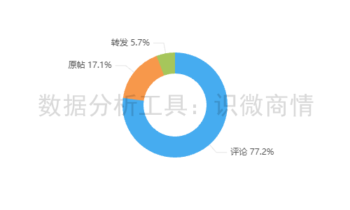 该段时间内,有关“好想来误把初中生当小偷事件”的舆情信息类型以评论为主,占77.2%,说明该事件引发了较大的争议;其次为原帖,占17.1%;转发较少,占5.7%。