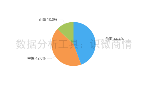 该时段内,有关“林俊旸离职事件”的舆情情感倾向以负面为主,占44.4%;其次为中性舆情,占42.6%。正面舆情较少,占13.0%。