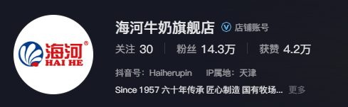 涉事直播间:抖音账号“海河牛奶旗舰店”,认证主体为天津市佰意电子商务有限公司,系海河乳品授权经销商,账号粉丝14.3万。