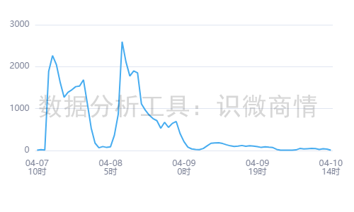 根据识微商情舆情监测系统(<<<点击免费试用)显示,2026年04月07日10时至2026年04月10日14时,有关“海河牛奶直播间涉低俗言行事件”的舆情热度约为41,188。通过观察趋势可知,舆情于04月0714时达到第一个小高峰,04月08日08时达到最高峰。