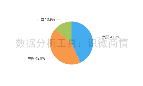 该时段内,有关“海河牛奶直播间涉低俗言行事件”的舆情情感倾向以负面为主,占43.2%;其次为中性舆情,占42.9%。正面舆情较少,占13.9%。