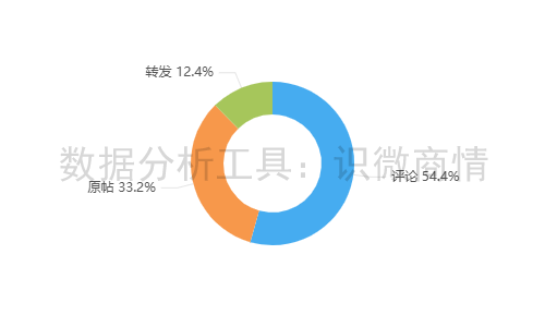 该段时间内,有关“海河牛奶直播间涉低俗言行事件”的舆情信息类型以评论为主,占54.4%;其次为原帖,占33.2%;转发较少,占12.4%。