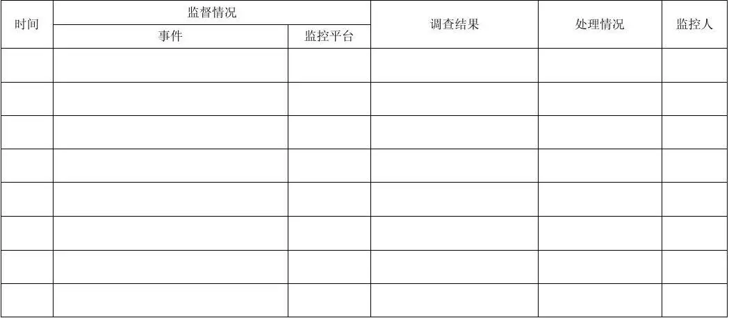 5.值班时间+值班人+监控情况(关键词、搜索引擎、主要巡查平台)+监控结果+处理情况