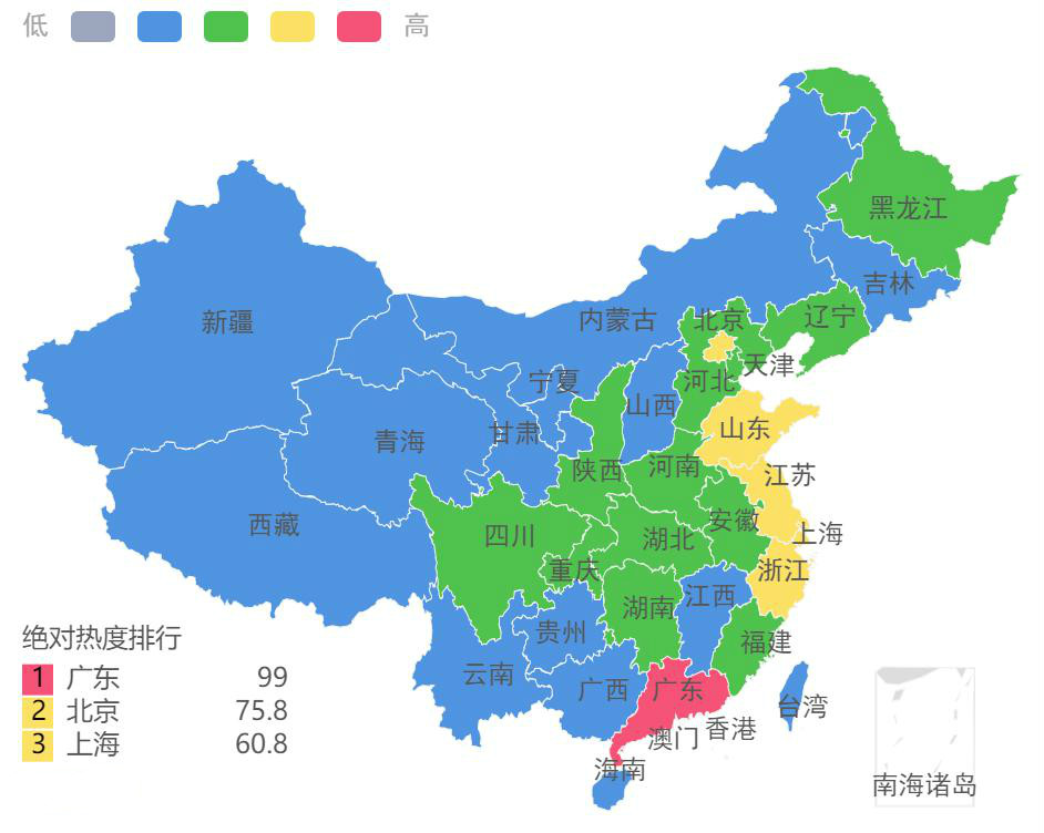 对本次事件关注度最高的是广东地区,其次是北京和上海地区。这三地的金融市场均较为繁荣,且媒体众多、网络普及程度高,因此对该事件相关话题关注度最高。