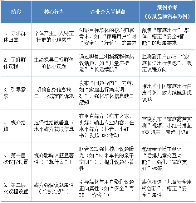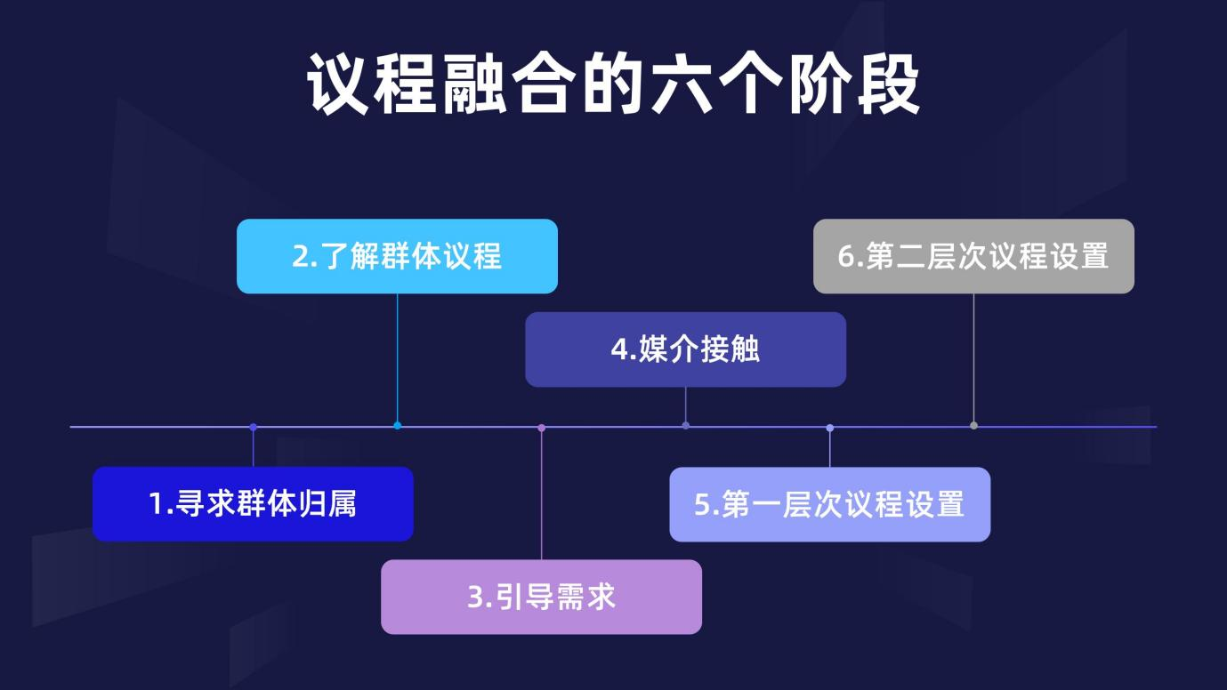 议程融合是一个递进式的社会传播过程,麦库姆斯与肖将其划分为六个阶段,每个阶段均蕴含企业传播的介入机会: