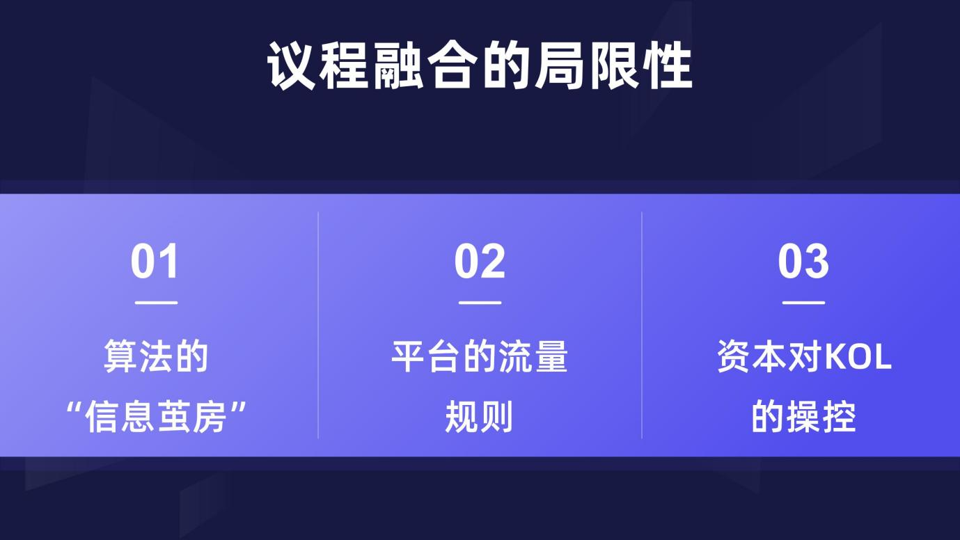 平台的流量规则会倾斜特定类型议程,例如抖音对“短平快+强情绪”内容的偏好,导致深度议题难以获得融合机会);