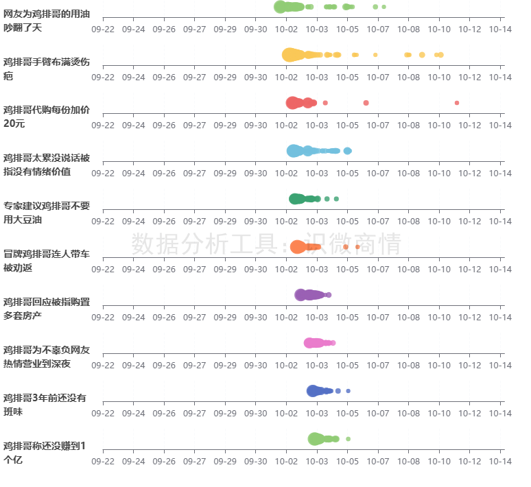 舆情结果:消费者混淆正品与仿冒,话题从初期的比较正面的 #鸡排哥演我的工作状态# #像鸡排哥一样热爱生活# 转向后期的 #冒牌摊位乱象# 等负面,最终,冒牌鸡排哥连人带车被劝返。