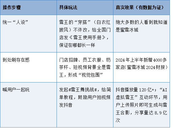 表2蜜雪冰城“雪王”火遍全国的3步秘诀(数据来源:互联网公开资料)