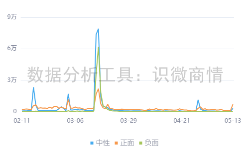 这一系列“可看见、可验证、可参与”的行动景观,快速扭转了舆情颓势。通过观察趋势可知,在315晚会之前,全棉时代中性和正面舆情占据主流,315之后负面舆情暴涨。