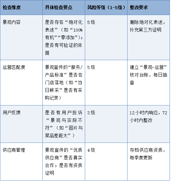 为帮助企业提前识别虚假性风险,这里提供一个“景观真实性自查清单”参考(表3),企业可每月对照检查,从源头规避风险。