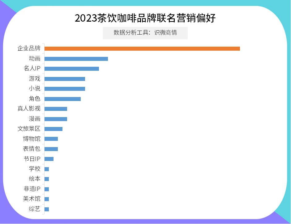 比如茶咖行业的联名,主流品牌一年联名加起来超过百次,被吐槽“IP都不够用了”,从小说、漫画、动画到真人影视作品、名人明星,从旅游景区到博物馆,从传统民族品牌到小众设计品牌、奢侈品牌,应有尽有。