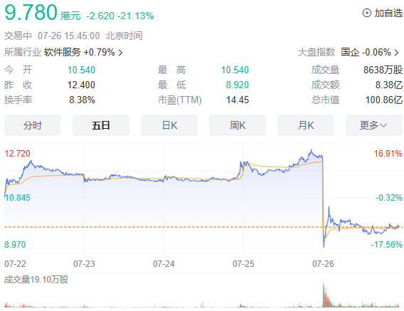 东方甄选(01797.HK)7月26日早盘股价大幅走低,盘中跌幅一度接近30%。而与之对应的董宇辉和“与辉同行”直播账号一夜之间涨粉10万。