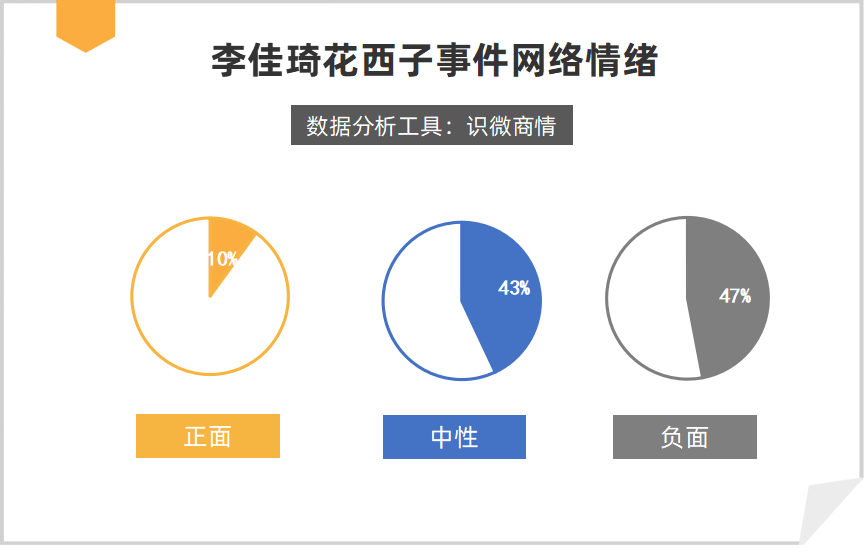 2023年9月9日21点—11日16点间,从网络情绪来看,事件相关话题下以占47%的负面表达为主,中立及正面另占43%、10%。