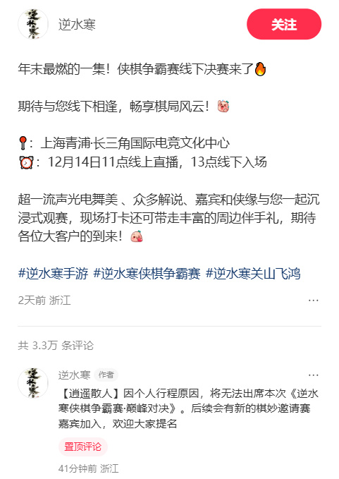 争议迅速蔓延至逍遥散人的商务合作领域。网易旗下《逆水寒》手游率先终止其赛事嘉宾合作;vivo因曾与逍遥散人存在商业推广合作关联,被网友纳入“狙击名单”,直播间提前遭遇大规模刷屏干扰,正常经营活动受影响。