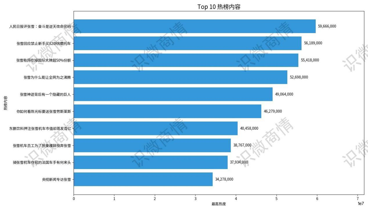 相关话题跨平台霸榜多日,不管是机车圈、创业圈,还是普通网友,都在聊这事儿,真正实现了全域破圈,做到了“人人都知张雪机车夺冠”。