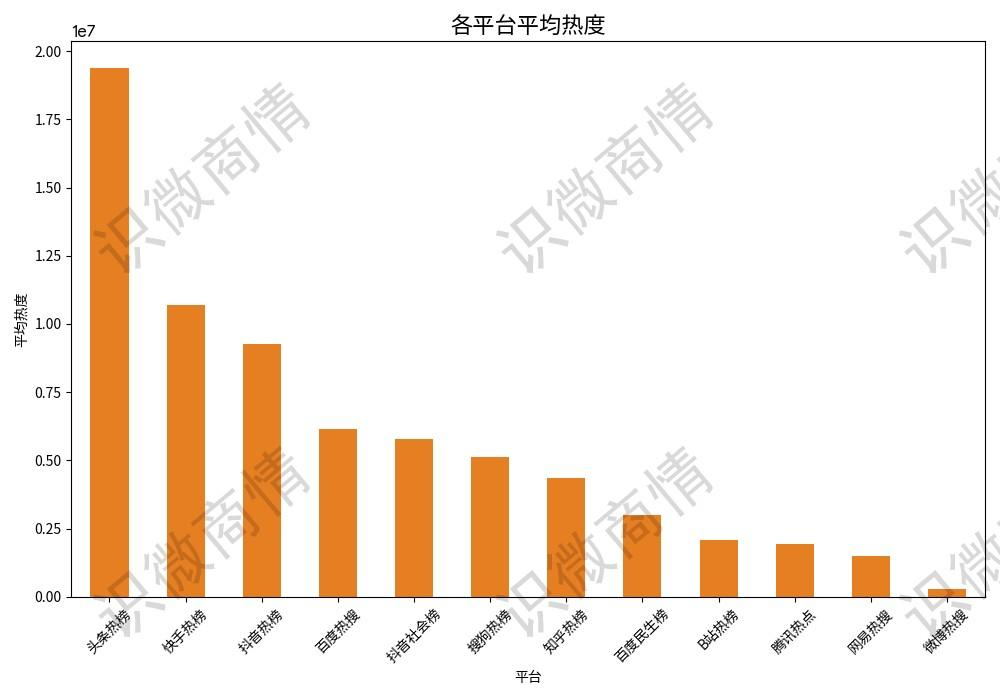 其中,头条热榜占比16.2%,平均热度19,392,102,远超其他平台。包揽TOP10热门内容中的9条,是现象级内容的主要传播阵地。