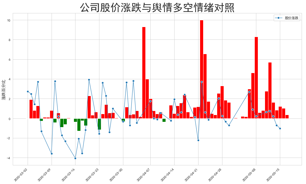 我们将舆情与股价变化进行同期对照如下图。