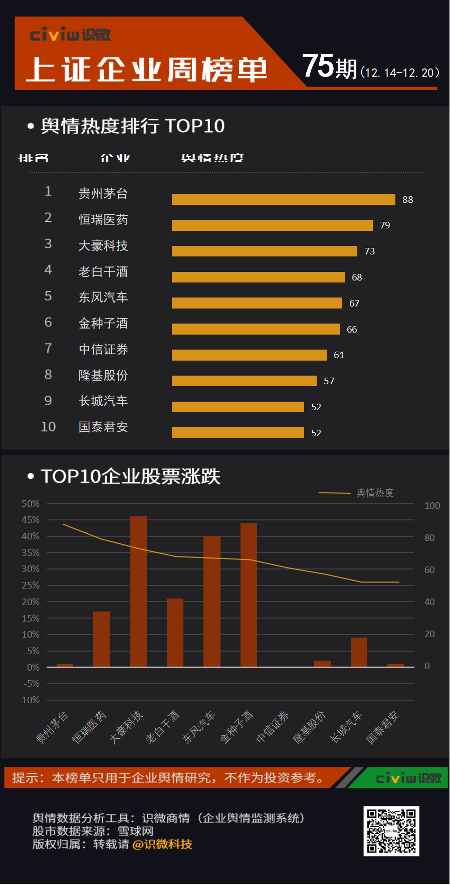 上证企业网络舆情热度周排行榜(第75期)