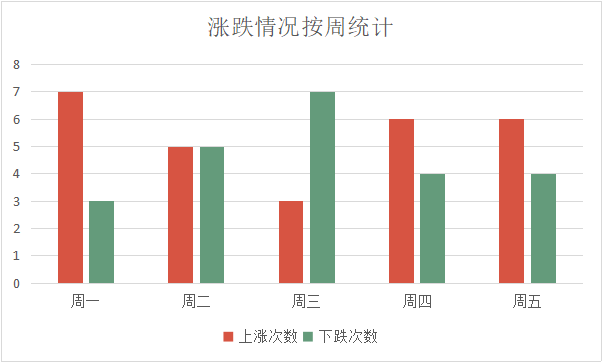 统计周期内,该股统计涨跌情况如下,周一上涨比率较高。