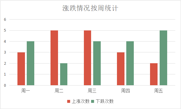 统计周期内,该股统计涨跌情况如下,从统计结果看,周二上涨、周五下跌比率较大。