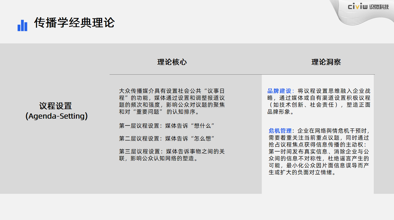 2、分析洞察:用议程设置、框架理论等工具,快速研判危机性质、责任归属与发展趋势。