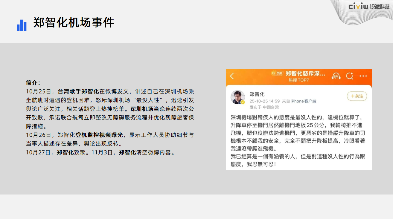 【文章声明】识微科技网倡导尊重与保护知识产权。本网站文章发布目的在于分享舆情知识。部分内容仅是发稿人为完善客观信息整理参考,不代表发稿人的观点。未经许可,不得复制、转载、或以其他方式使用本网站的内容。如发现本网站文章、图片等存在版权问题,请及时联系并发邮件至zhangming@civiw.com,电话:4008299196,我们会在第一时间删除或处理相关内容。