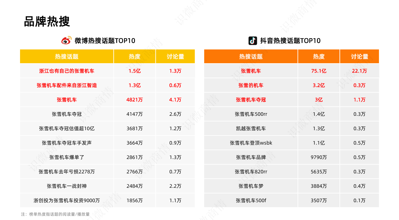 注:报告中数据单位如无特指,均为条。数据来源:1、公开资料整理(百度指数、微信指数等);2、识微商情监测系统数据统计。