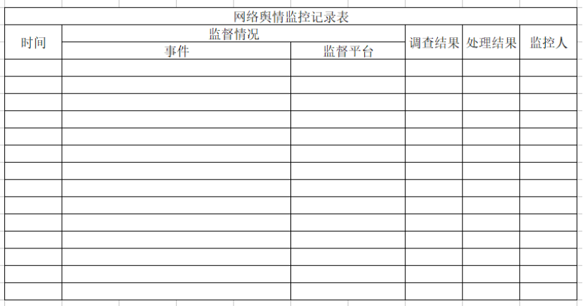 负面舆情监测登记表一般是每日舆情管理工作中常规任务之一。以下是小编分享的舆情登记表,供参考。