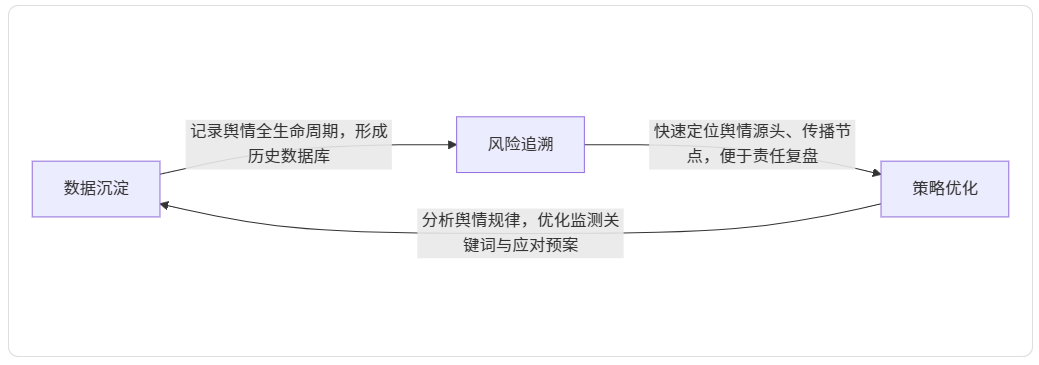 舆情监测台账并非简单的信息记录,而是企业舆情管理的“数据中枢”,核心价值体现在3个维度,是企业合规管控、风险预警的重要支撑: